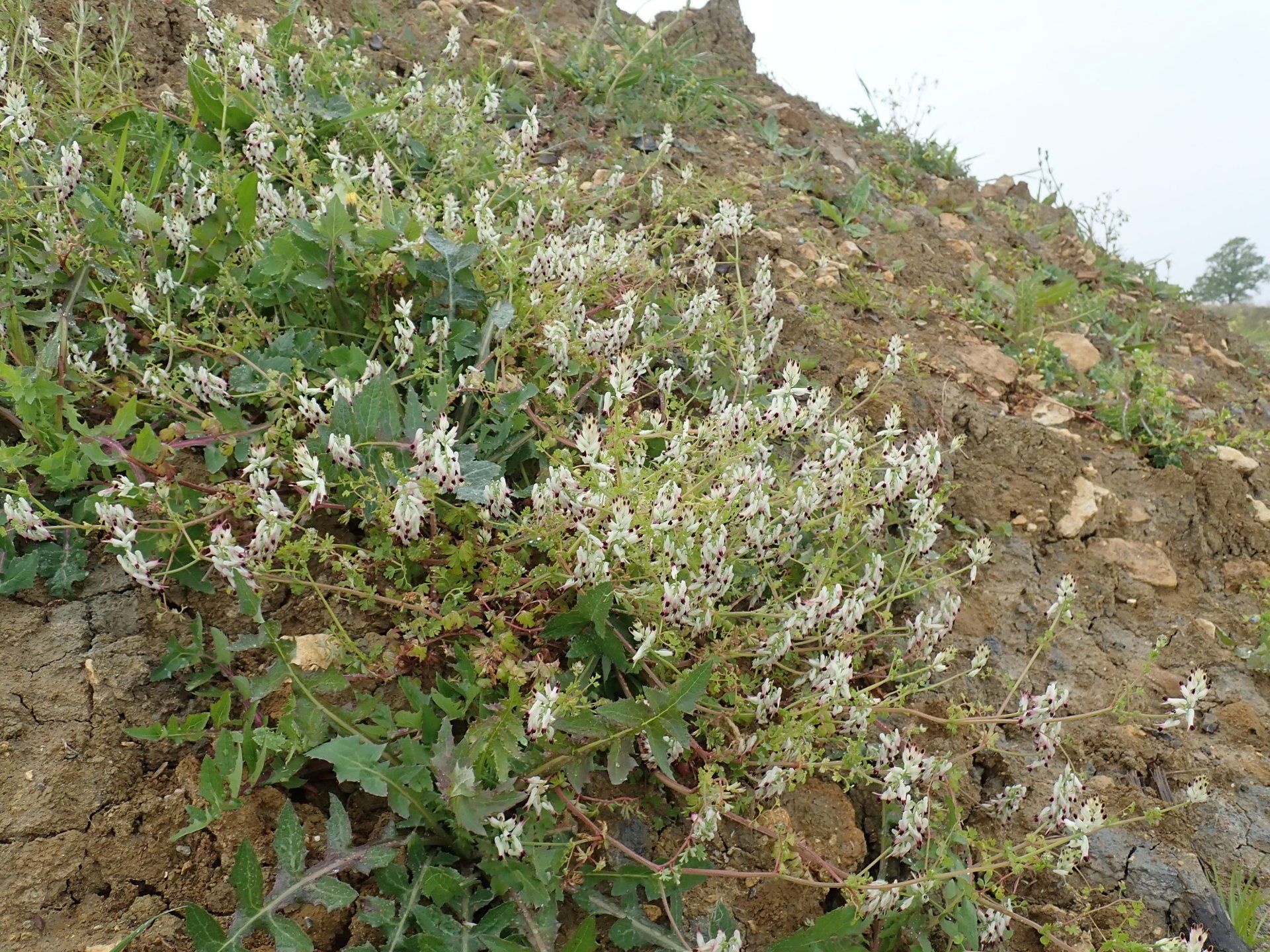 White Ramping-fumitory Fumaria capreolata, new to Wiltshire and clearly brought in with imported soil. Westbury, April 2020. By Sharon Pilkington