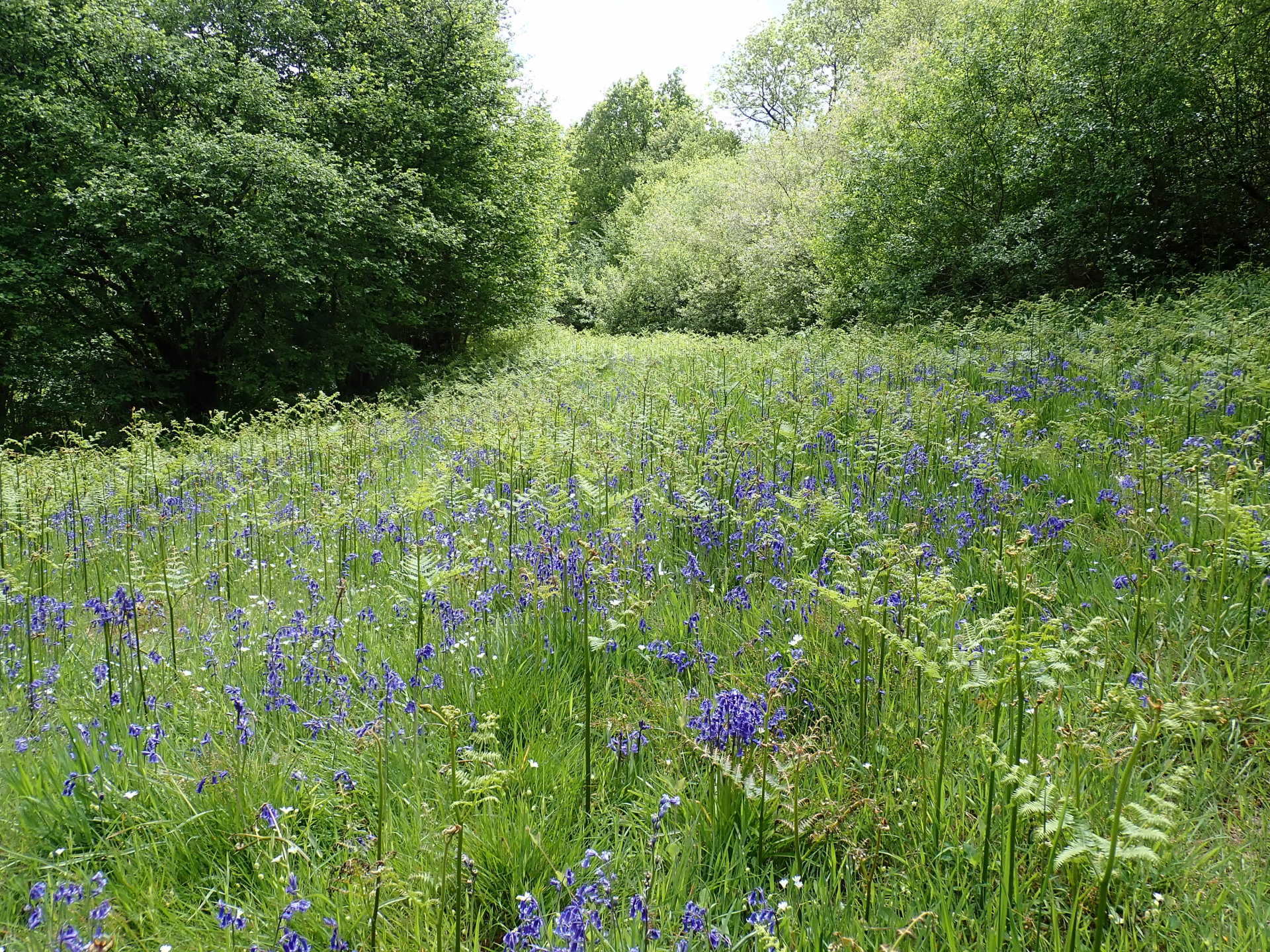 Gutch Common, near Semley. A very popular field meeting to a special site with some remarkably un-Wiltshire-like habitats and, in May 2023, a spectacular show of Bluebells out in the open. By Fran Sinclair