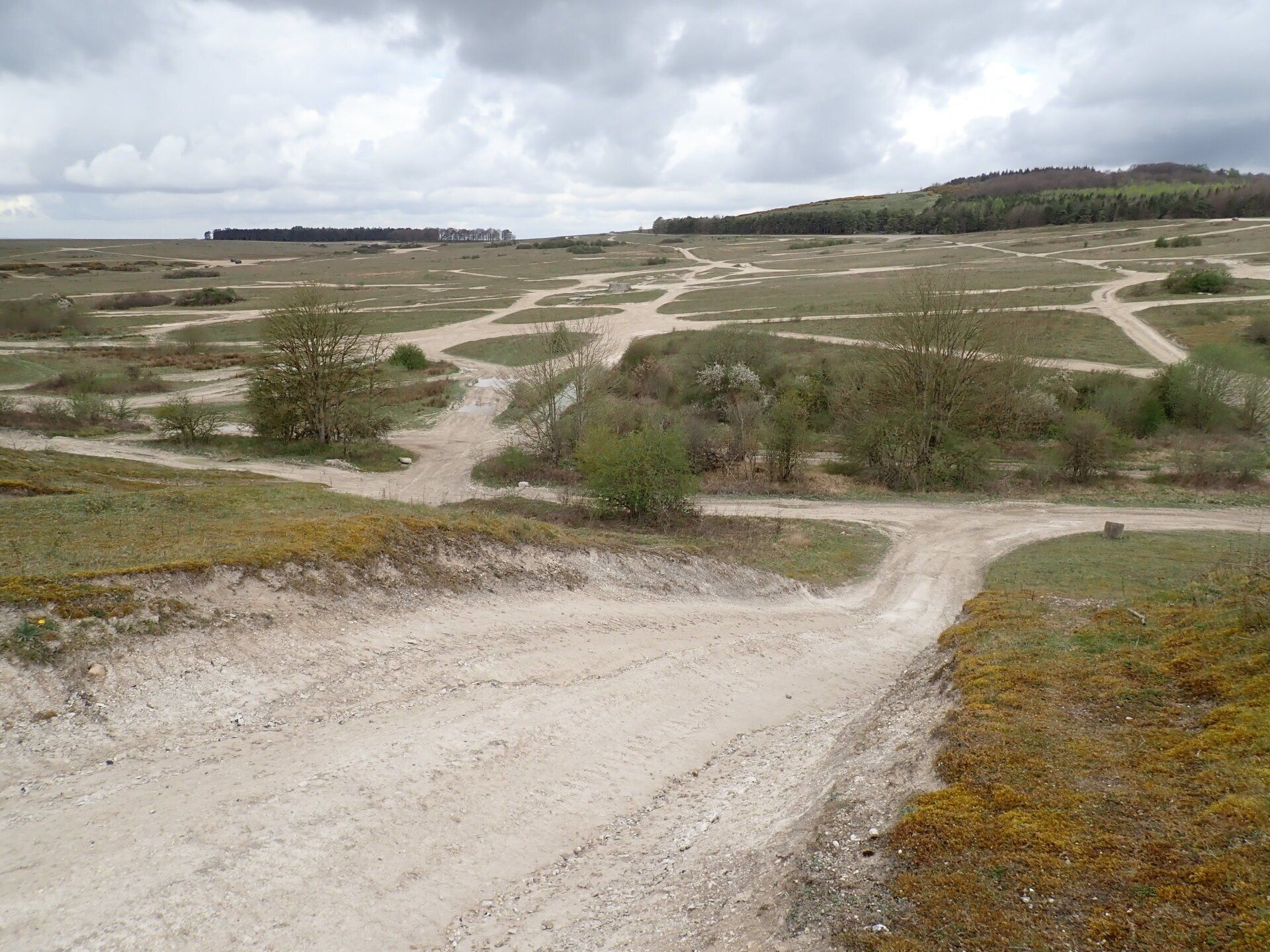 View across the almost lunar landscape of the Cross Country Driving Area (CCDA) on Salisbury Plain.